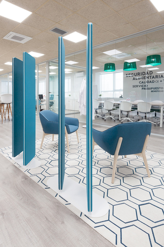 The DIVIDERS 360 collection combines functionality and design with upholstered panels that rotate 360 degrees, allowing for quick reconfiguration of the space. Each divider, with particle board panels and polyurethane foam, offers high acoustic absorption, improving comfort in open environments