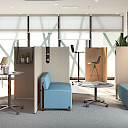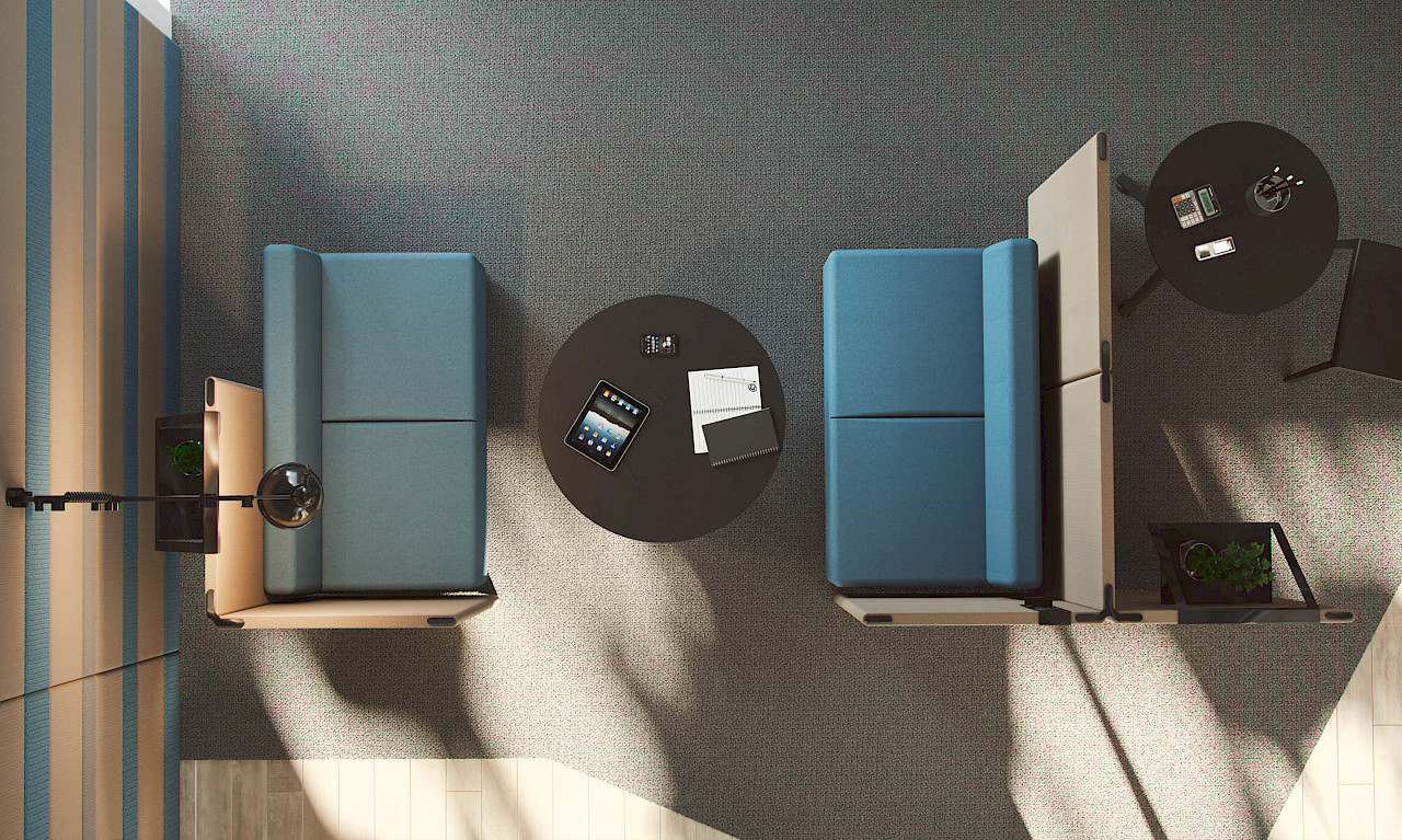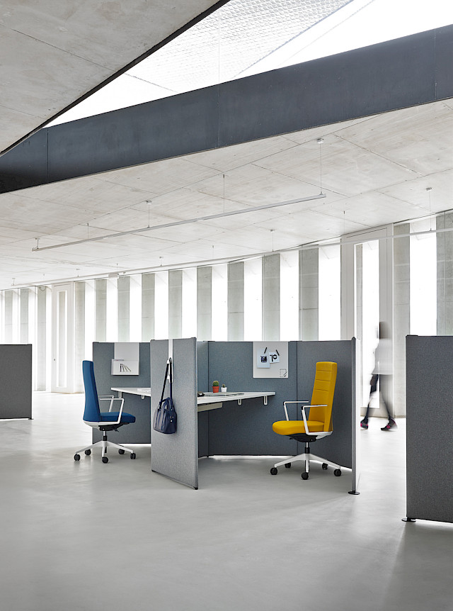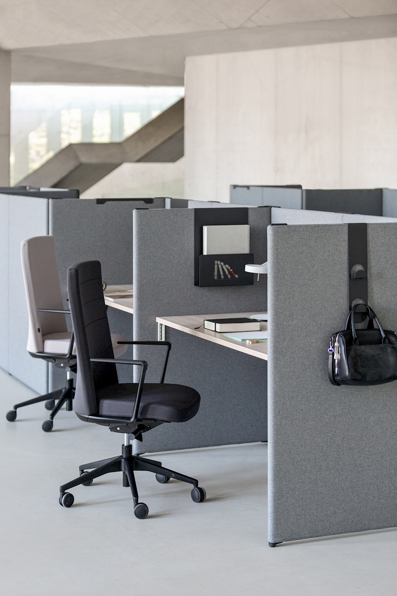 The LINK modular system redefines office space configuration with 130 and 170 cm high panels and widths of 69, 80 and 102 cm. Its lightweight and versatile design allows the creation and adaptation of spaces of different heights, integrating easily with modular sofas and operating tables. The panels, available in various finishes, are assembled with a durable aluminum joining system.