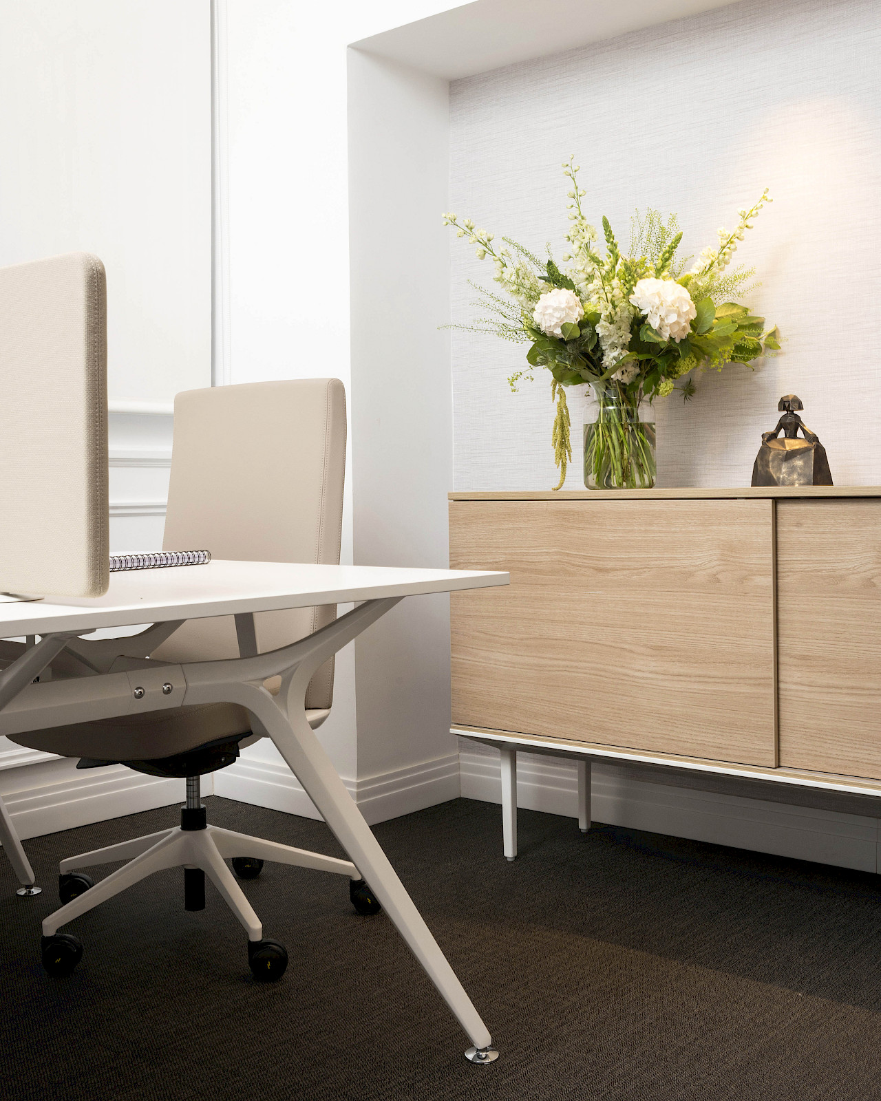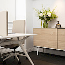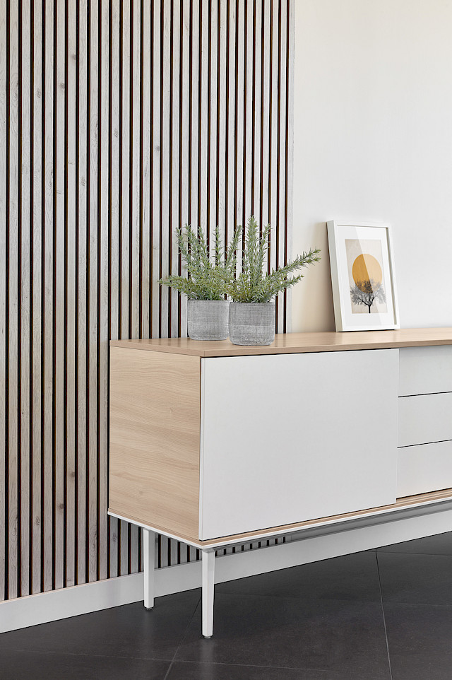 LONGO cabinets offer elegant and functional storage solutions for modern environments. Available in sideboard and auxiliary formats. Their modular and minimalist design ensures seamless integration into any office, while sliding and hinged doors provide easy access.