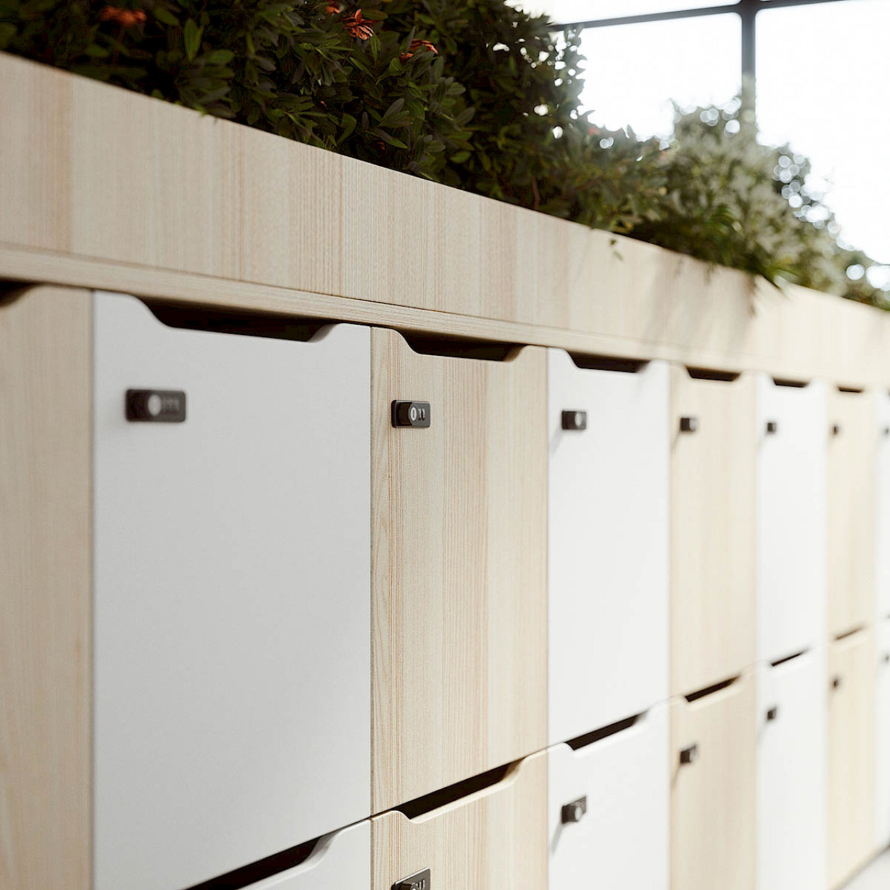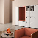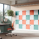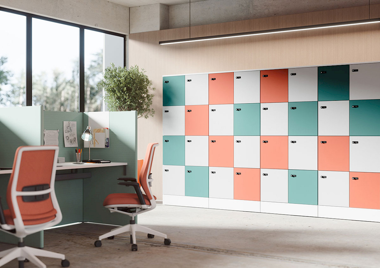 Actiu's locker program offers robust and customizable solutions for personal storage in a variety of environments. Made of melamine, these lockers are available in a variety of finishes and colors. Available in single or double-sided configurations, they optimize order in shared spaces with a durable and functional structure.