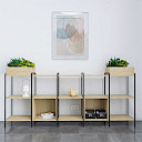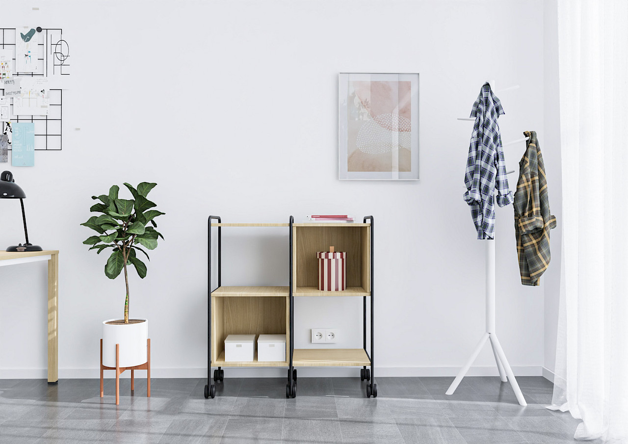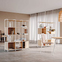 TUBBE is a versatile line of shelving with a steel tube structure, allowing unlimited configurations. It functions as storage, room divider, mobile or decorative element. It offers options such as open cabinets or cabinets with doors, shelves, drawers and furniture of various heights.