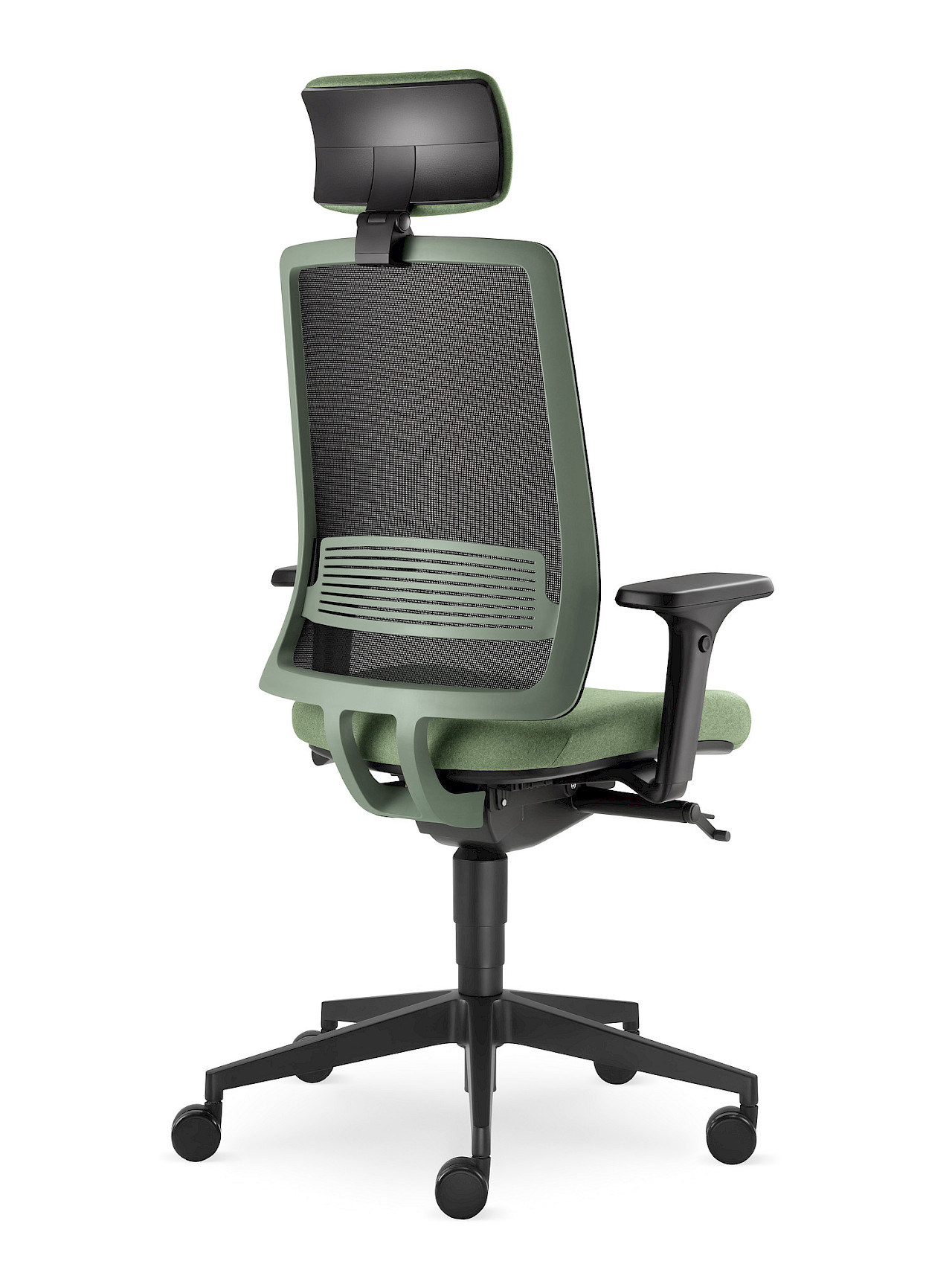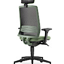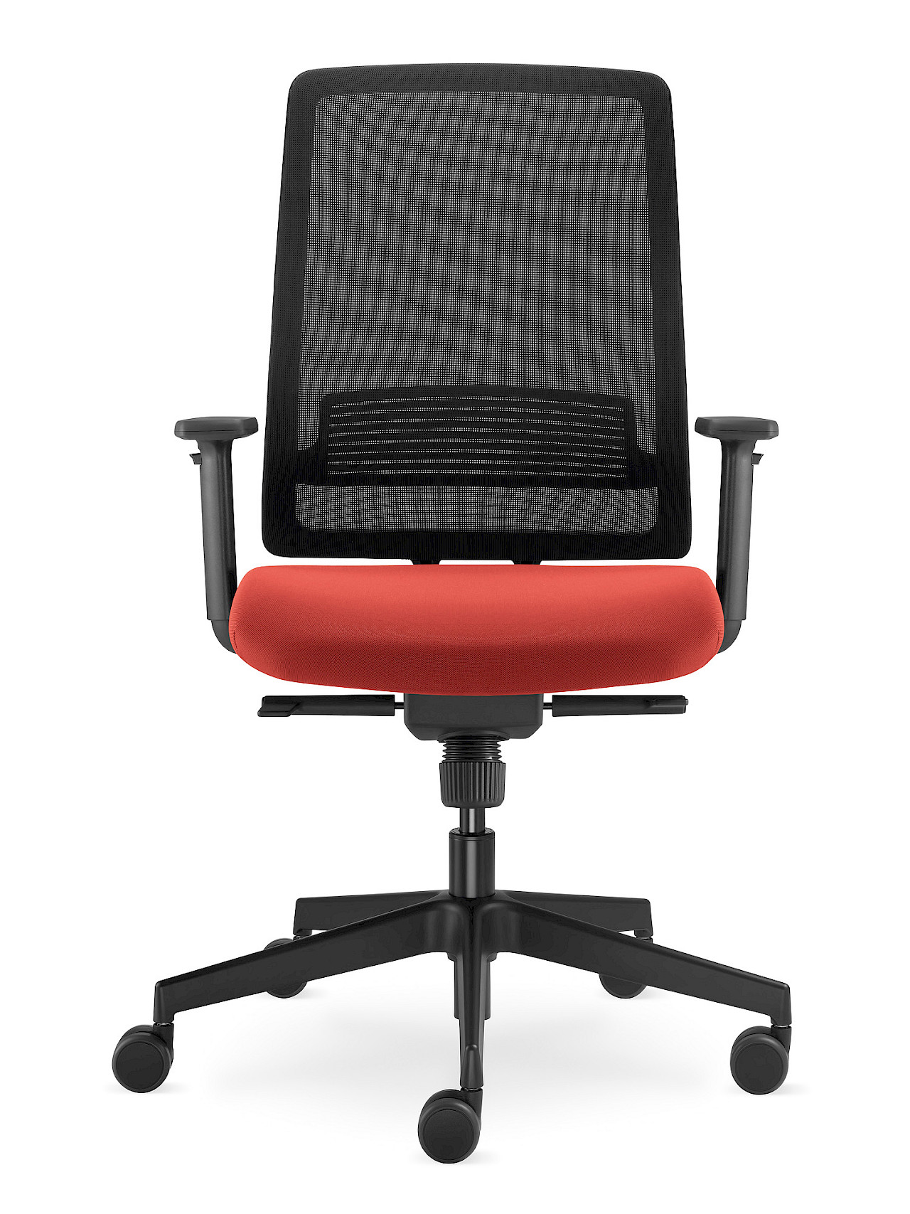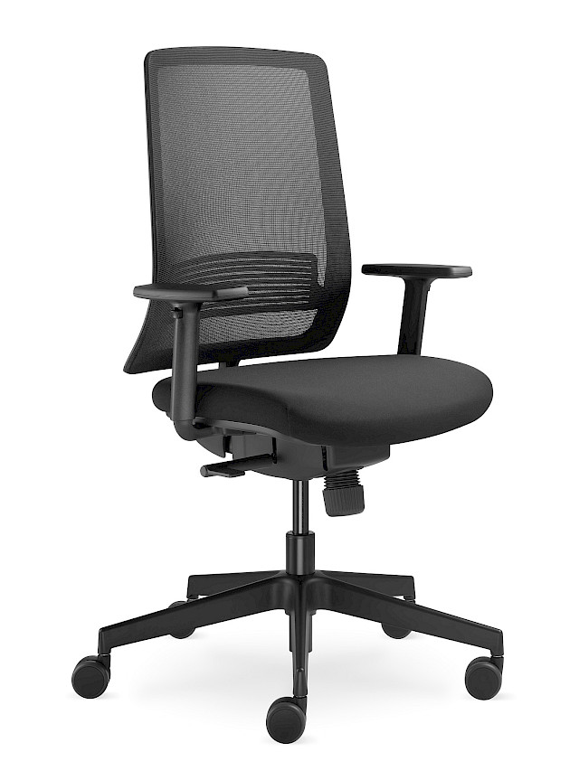 Swivel task chair, height adjustable, upholstered seat, mesh backrest, back upholstered in MEGA mesh, height adjustable lumbar support, black nylon backrest frame, SYS synchronous mechanism with a lateral backrest tension adjustment, 5 locking positions, black 5-star nylon base, black castors for carpets, Ø 60 mm
