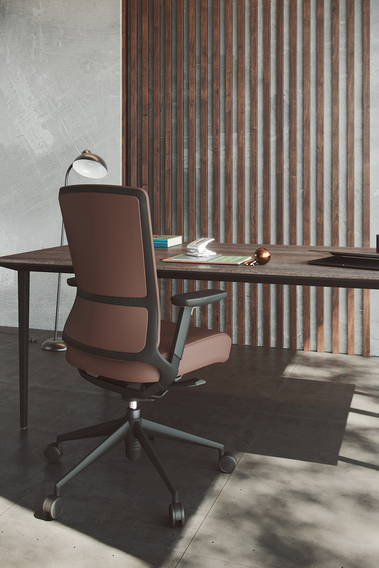 TNK500 is a directional office chair with synchronized tilting and tilt angle adjustable in four positions, with auto-return of the backrest. Its ergonomic Non Stop design includes a sliding seat for greater comfort. The seat foam, with air chambers, allows for optimal adaptation. Manufactured with sustainable materials, its die-cast aluminum structure makes it light and elegant.