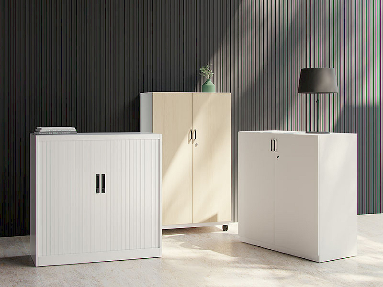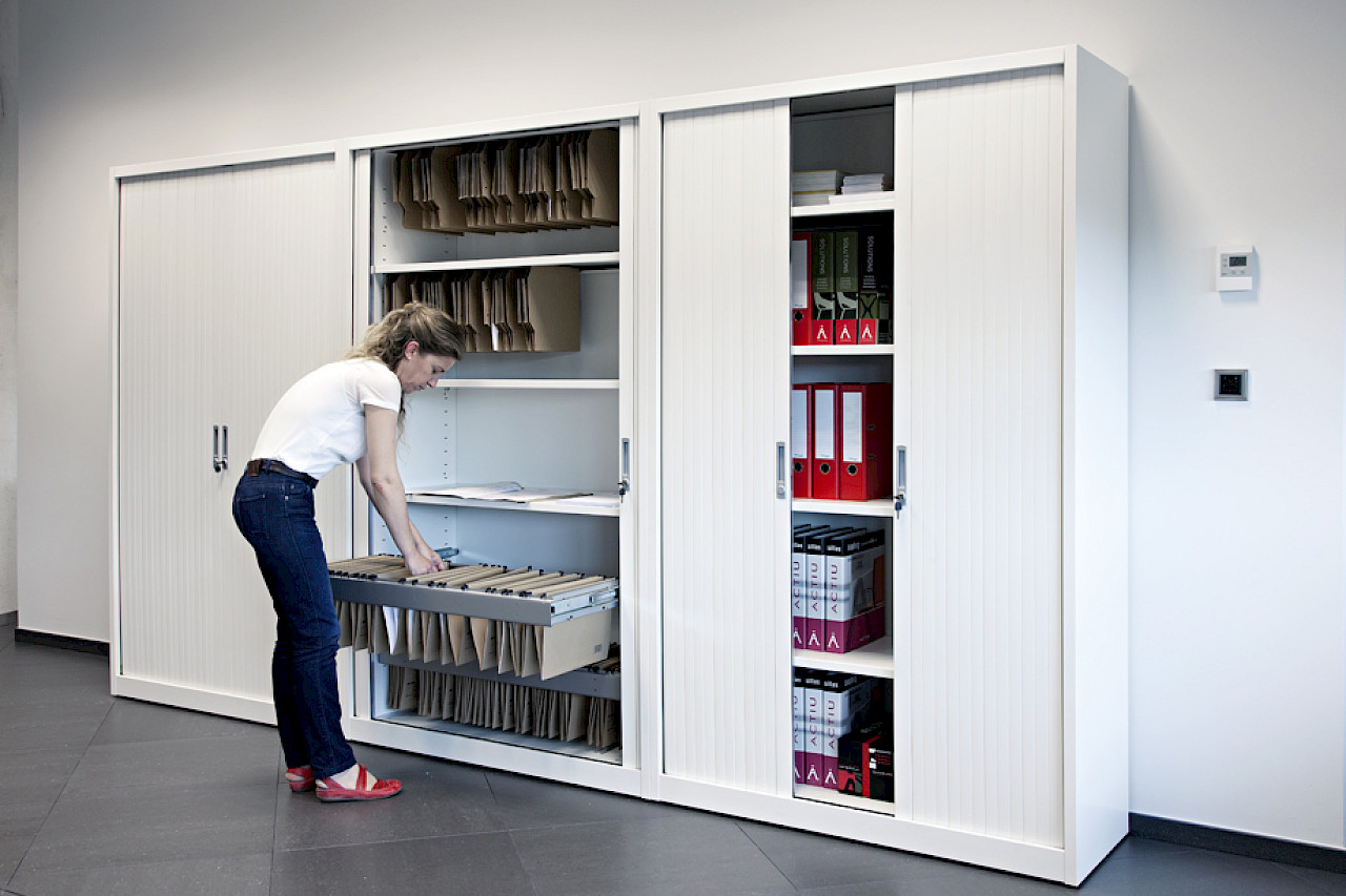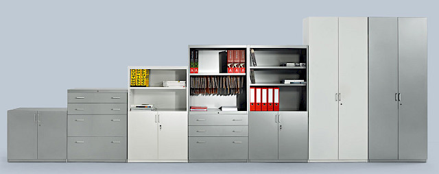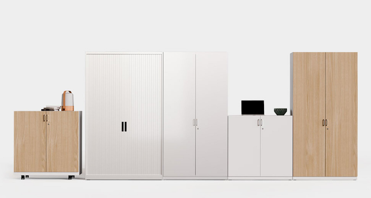The METAL CABINETS, made of steel, guarantee strength and durability, offering customizable solutions with hinged doors, drawers or shelves. They adapt to various dimensions and styles, optimizing office organization. In addition, they have anti-tilt locking systems and can be fitted with casters for greater versatility.