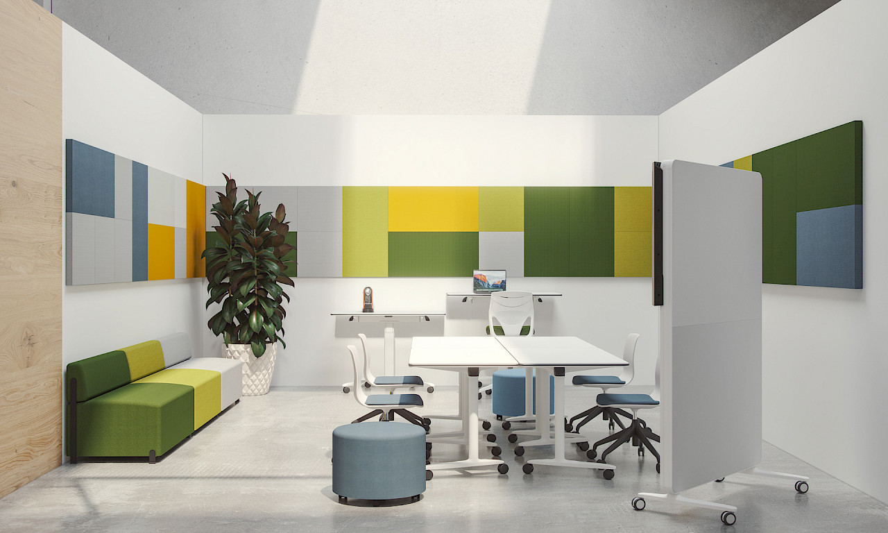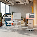 AGILE Collection offers solutions to adapt workspaces to agile methodologies. Caddy lightweight supports, with integrated connectivity, support tasks in collaborative environments, promoting safe and efficient work. They can be used as mobile dividers, covered with laminated boards, whiteboards or upholstery coverings.