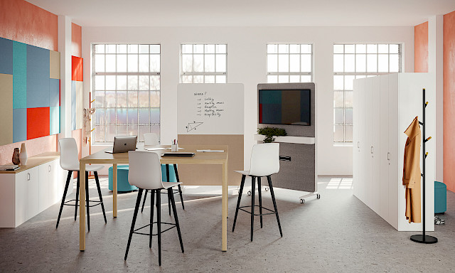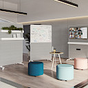 AGILE Collection offers solutions to adapt workspaces to agile methodologies. Caddy lightweight supports, with integrated connectivity, support tasks in collaborative environments, promoting safe and efficient work. They can be used as mobile dividers, co