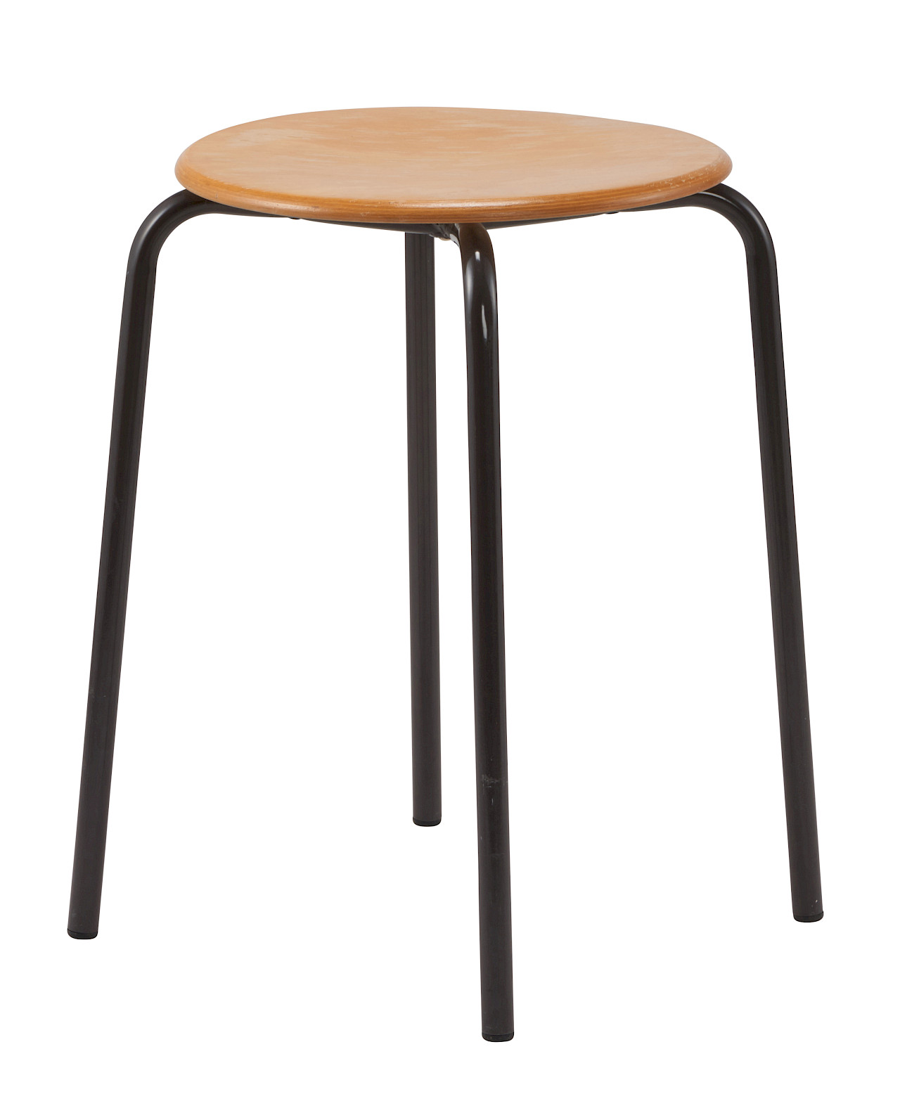 The H stool has a round tubular frame and four sturdy feet that ensure it stands securely. The seat is made of wood and can be upholstered. Thanks to its stackability, the H stool is particularly space-saving and practical to stow.