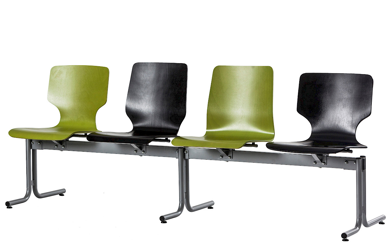 The Standard H combines a robust construction with an attractive design and is ideal for a variety of applications, from 2 to 5 seats. It features round tube feet with plastic tube ends that provide stability and protect the floor. Depending on requirements, the model is available with a single-column T-frame or a double-T frame, which offers flexibility and adaptability in different work environments. The seat shell is made of wood and can be upholstered. Ergonomic seat and armrests are available as an option.