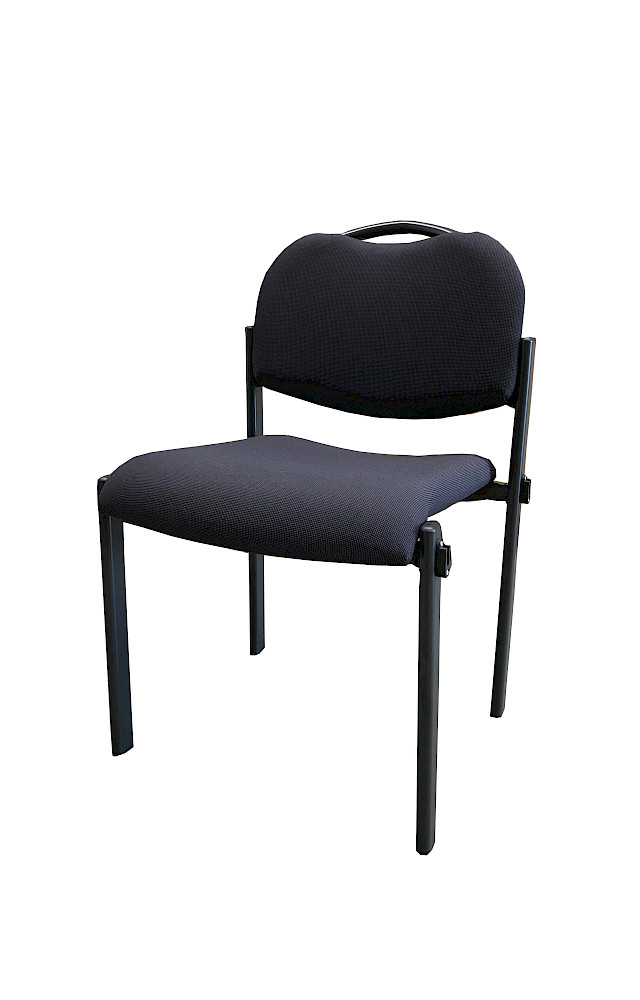 This upholstered chair features black upholstery, four chair legs and a row connection. It combines comfort with modern design and is ideal for dining rooms, conference rooms or offices.