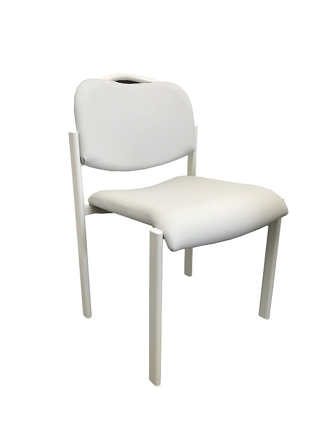 This chair has padding and four chair legs. Upholstery is available in black or grey-white. It can also be fitted with armrests. Combining comfort with modern design, it is ideal for dining rooms, conference rooms or offices.
