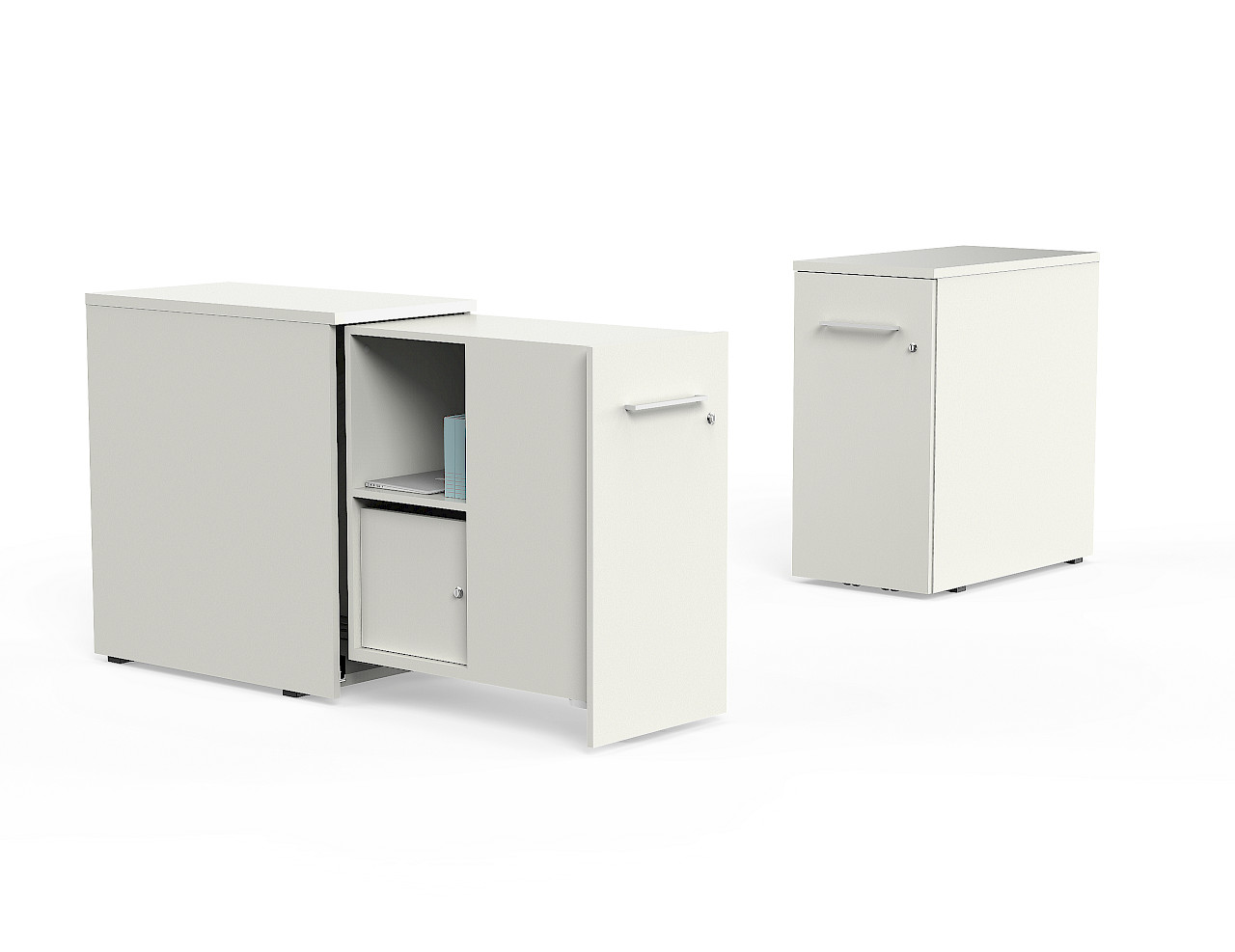 Actiu's MFC Bucks collection offers mobile and fixed storage solutions. These Bucks include options such as drawers, pencil trays and dividers, lockable for security.