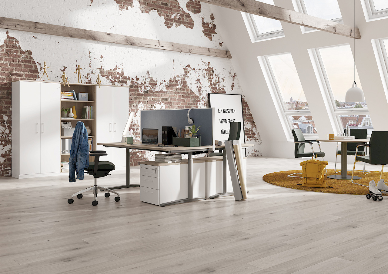 Most common products out of the furniture systems, All-in-One and Endless, combined for fast delivery. Fully equiped workspaces delivered within 10 Days.